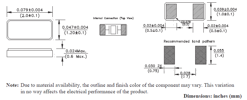 ABS06-107-32.768KHZ-T,2012mm,Abracon實時時鐘晶振,ABS06,兩腳貼片晶振,尺寸圖