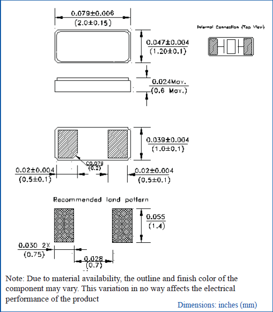 小型尺寸2.0 x 1.2 x 0.6mm,理想的高密度電路板