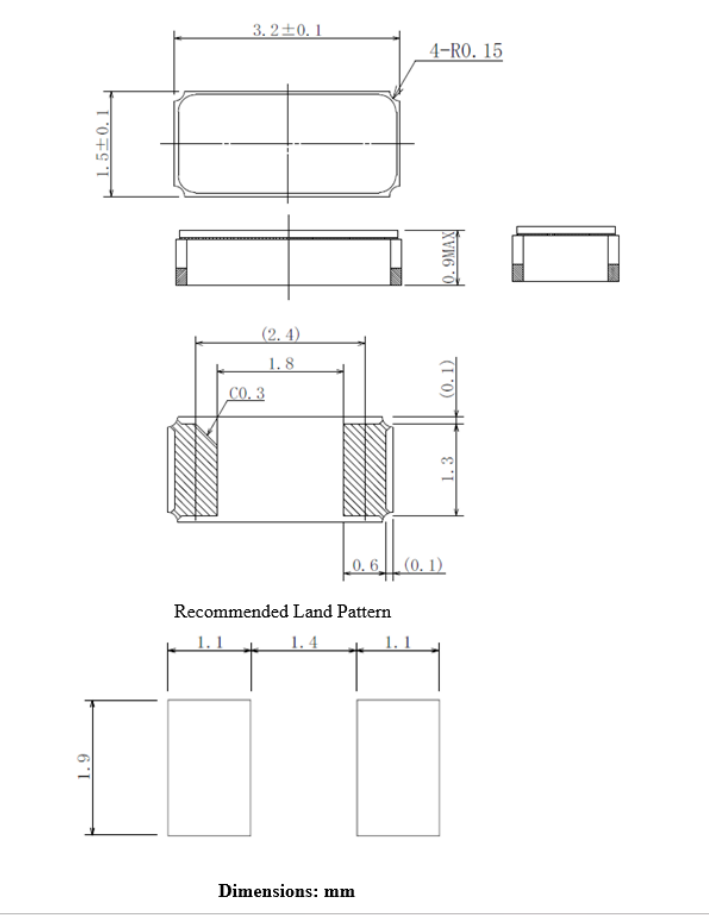 ABS07-LR-32.768KHZ-6-1-T,3215mm,Abracon石英晶振,ABS07-LR,工業應用晶振,尺寸圖