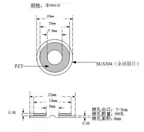 此規格超聲波霧化片主要應用在微量霧化設備中. 2. 型號