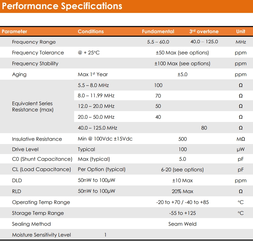 | C0 (Shunt Capacitance) | Max (typical) 5.0 pF | |||||||||||||||||||