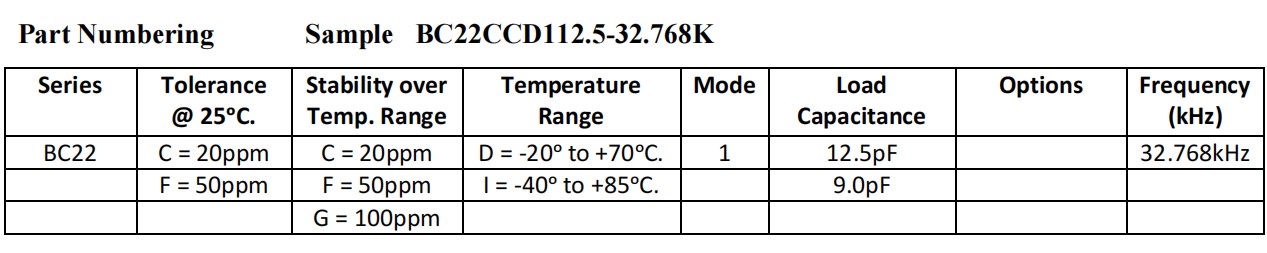 BC22CCI112.5-32.768K,1610mm,Bomar晶振,32.768KHz,BC22,實時時鐘晶振,參數表