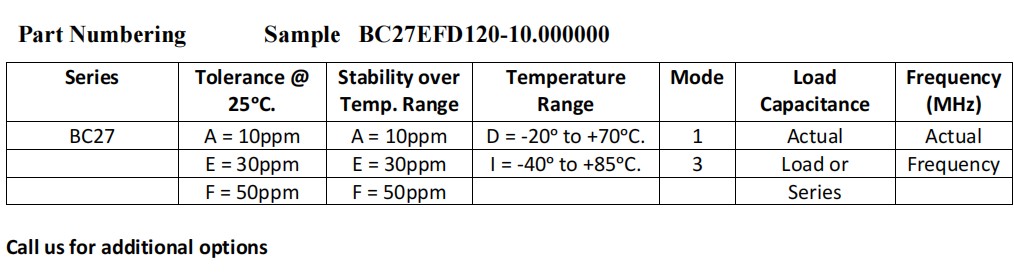 | Frequency Stability | ±50ppm–Standard ±10ppm to ±50ppm - Available |