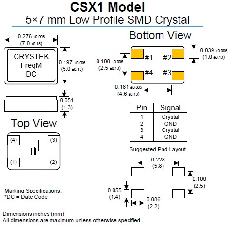 CRYSTEK晶振,CSX1晶振,無鉛環(huán)保晶振.小型表面貼片晶振型,是標(biāo)準(zhǔn)的石英晶體諧振器,適用于寬溫范圍的電子數(shù)碼產(chǎn)品,家電電器及MP3,MP4,播放器,單片機(jī)等領(lǐng)域.可對應(yīng)8.000MHz以上的頻率,在電子數(shù)碼產(chǎn)品,以及家電相關(guān)電器領(lǐng)域里面發(fā)揮優(yōu)良的電氣特性,滿足無鉛焊接的回流溫度曲線要求.
