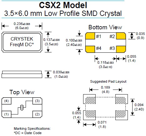 CRYSTEK晶振,CSX2晶振,高品質(zhì)石英晶體.普通貼片石英晶振外觀使用金屬材料封裝的,具有高穩(wěn)定性,高可靠性的石英晶體諧振器,晶振外觀本身使用金屬封裝,充分的密封性能,可確保其高可靠性,采用編帶包裝,外包裝采用朔膠盤,可在自動貼片機(jī)上對應(yīng)自動貼裝等優(yōu)勢.