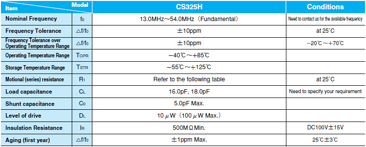 CS325H諧振器,CITIZEN無源晶振,存儲硬盤晶振,高密度SMD類型3.2*2.5*0.55mm,頻率范圍13.0MHZ~54.0MHZ,可靠的陶瓷外殼和優秀的環境特征,適合各種應用程序通訊設備、AV設備等設備.