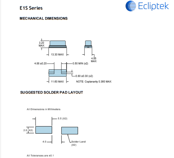 | E1SFA16-6.290M TR | Ecliptek | E1S | -40°C ~ 85°C | 6.29 MHz | ±50ppm | ±30ppm | 16 pF |