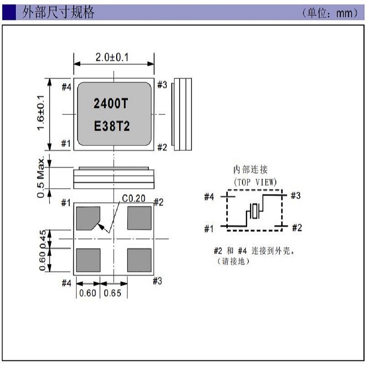 .外部尺寸規格:2.0×1.6×0.5mm