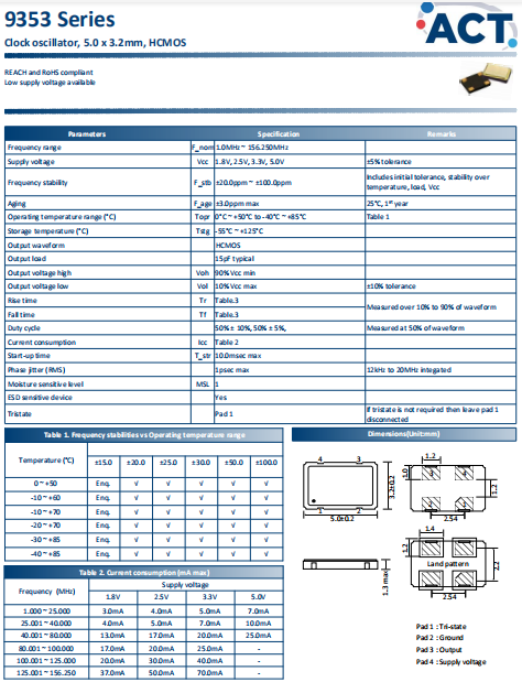 ACT晶振,9353晶振,低損耗振蕩器.智能手機晶振,產品具有高精度超小型的表面貼片型石英晶體振蕩器,最適用于移動通信終端的基準時鐘等移動通信領域.比如智能手機,無線通信,衛星導航,平臺基站等較高端的數碼產品,晶振本身小型,薄型具備各類移動通信的基準時鐘源用頻率,貼片晶振具有優良的電氣特性,耐環境性能適用于移動通信領域,滿足無鉛焊接的高溫回流溫度曲線要求.