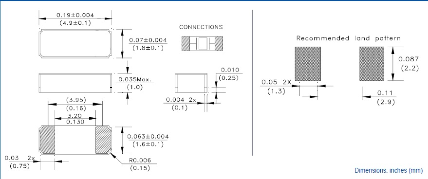 | 頻率溫度特征 | f_tem | ±20× 10-6 /-40°C~+85°C | 超出標準的規格請聯系我們. |