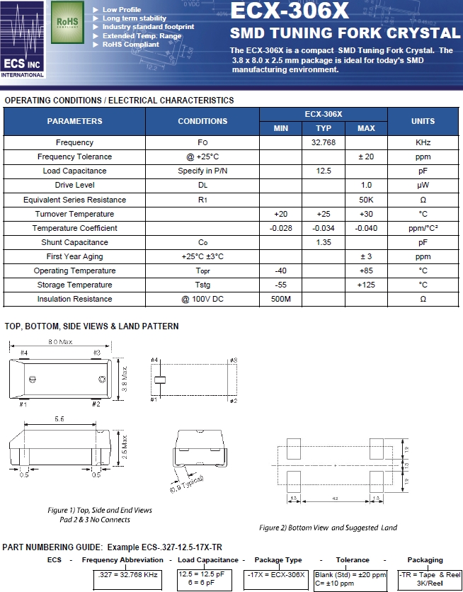 | ECS晶振 | 單位 | ECX-306X晶振 | 石英晶振基本條件 |