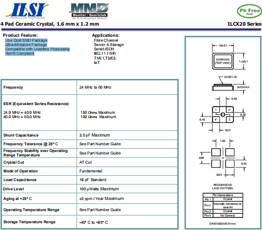 | ILSI晶振 | 單位 | ILCX20晶振 | 石英晶振基本條件 |