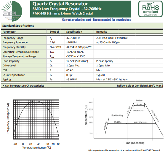AEL晶振,PMX-145晶振,陶瓷面石英晶體.小體積SMD時鐘晶體諧振器,是貼片音叉晶體,千赫頻率元件,應用于時鐘模塊,智能手機,全球定位系統,因產品本身體積小,SMD編帶型,可應用于高性能自動貼片焊接,被廣泛應用到各種小巧的便攜式消費電子數碼時間產品,環保性能符合ROHS/無鉛標準.