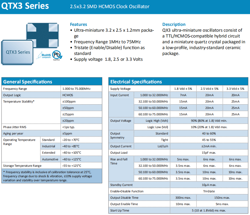 | 頻率穩(wěn)定度 | ppm | ±20ppm,±25ppm,±50pm,±100ppm |