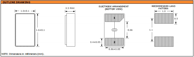 | 串聯電阻(ESR) | R1 | 如下表所示 | -10°C— +60°C, DL = 100μW |