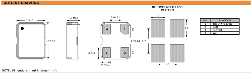 建議將輸出負載安裝在盡可能靠近石英振蕩器的地方(在20mm范圍之間).