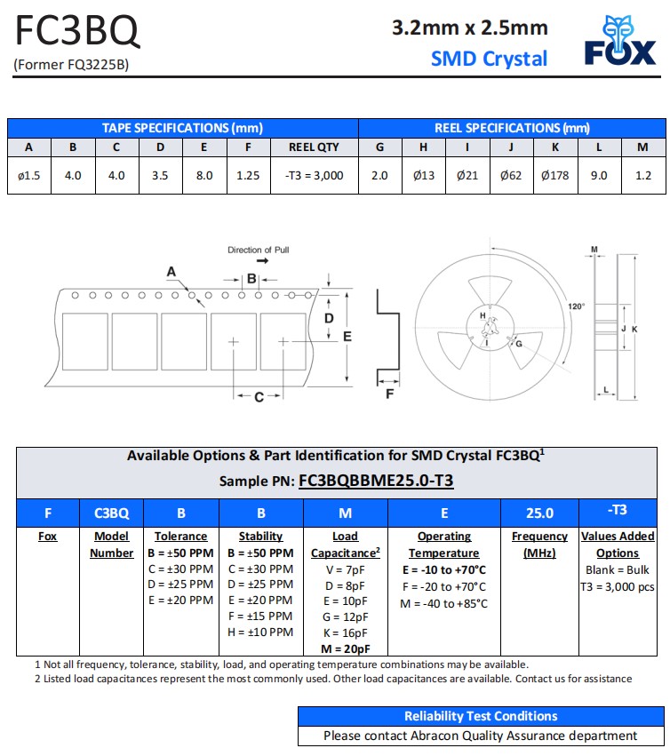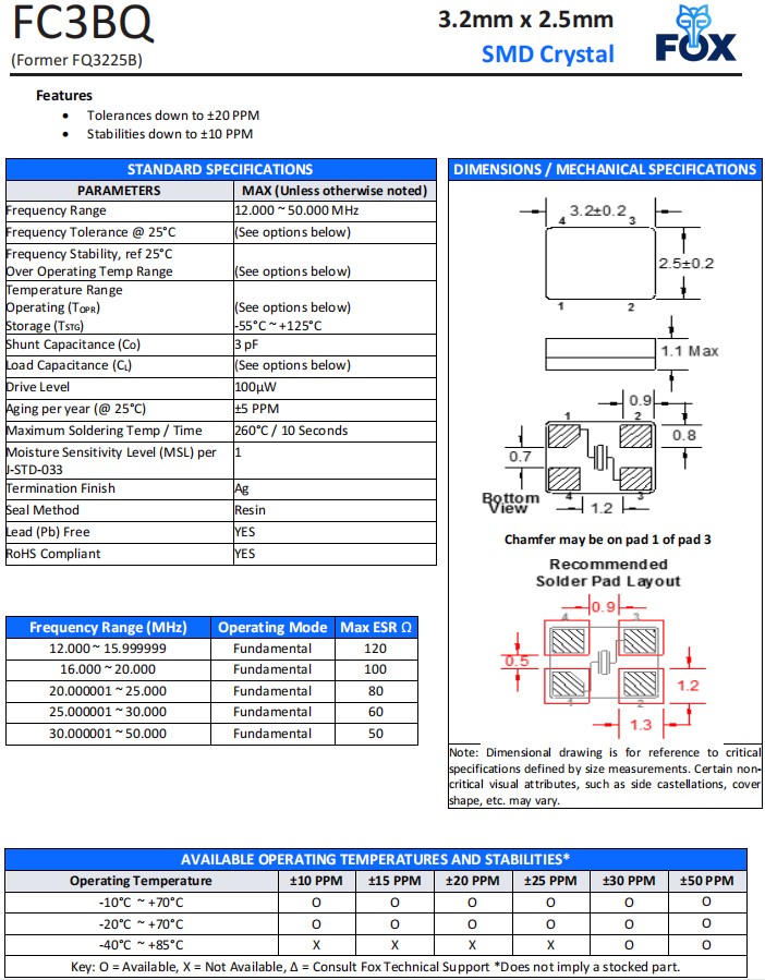 美國FOX進(jìn)口晶振,FC3BQEBME26.0-T3,汽車?yán)走_(dá)6G晶振,FQ3225B-16.000,3225mm晶振,參數(shù)表