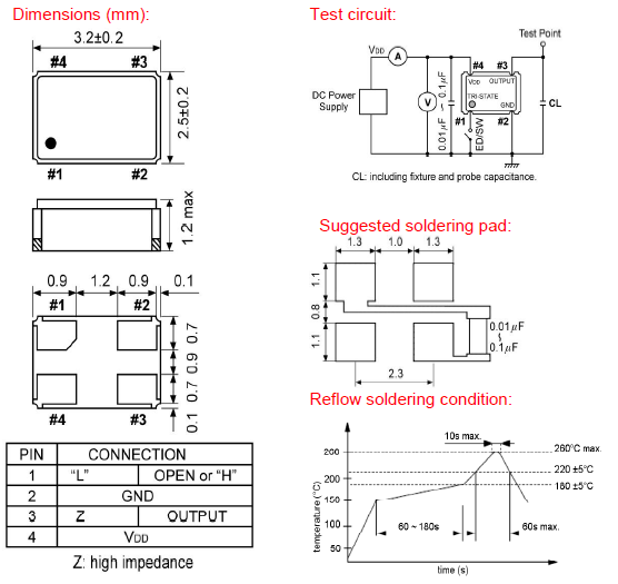 | tri-state control voltage (Pin#1) | VIH: VDD x 0.7 min.; VIL: VDD x 0.3 max. | |||||||||