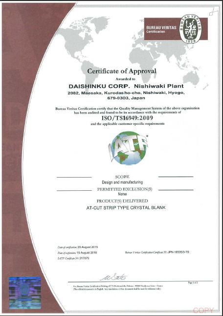 - [2019-08-29]日本電波晶體ISO9001系列質量認...