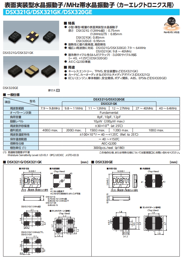 | KDS晶振 | 1C208000EZ0G汽車 | DSX321G | 3225 | 8.000M | 8PF | 30PPM | 40~85度 |