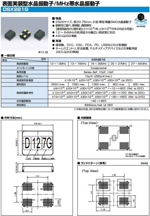 | 勵振レベル | 10μW(200μW max.) | ||||||||