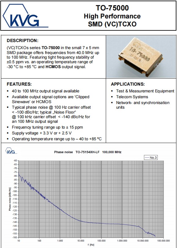 KVG溫補晶振,TO-75A4085KFH-LF-100.000MHz,通訊網絡6G晶振,參數表