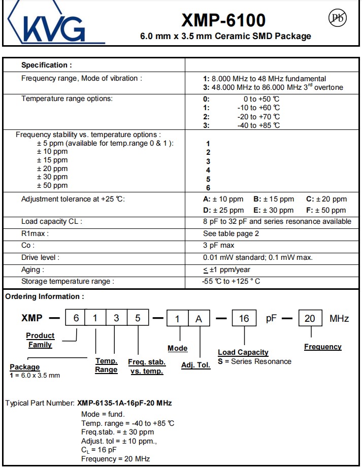 6035mm,XMP-6135-1A-16pF-48MHz,KVG進口晶振,48M晶體,參數表