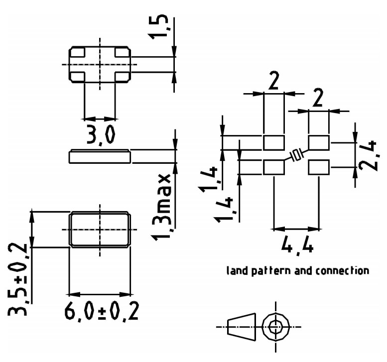 6035mm,XMP-6135-1A-16pF-48MHz,KVG進口晶振,48M晶體,尺寸圖
