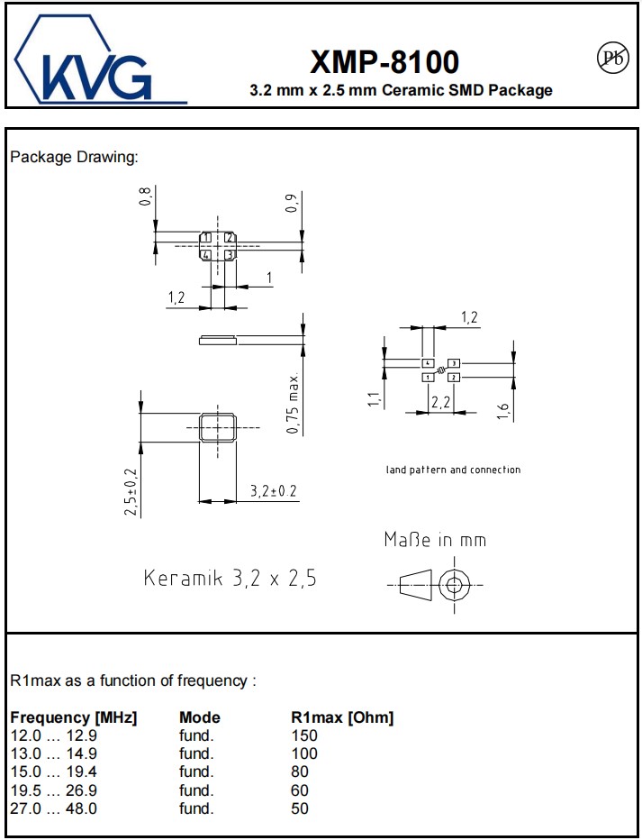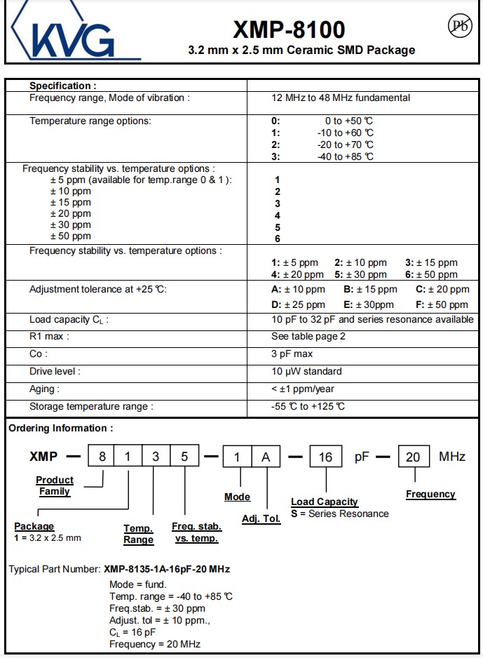 XMP-8135-4C-20pF-45MHz,3225mm,45MHz,KVG進(jìn)口晶振,XMP-8100,石英晶體諧振器,參數(shù)表