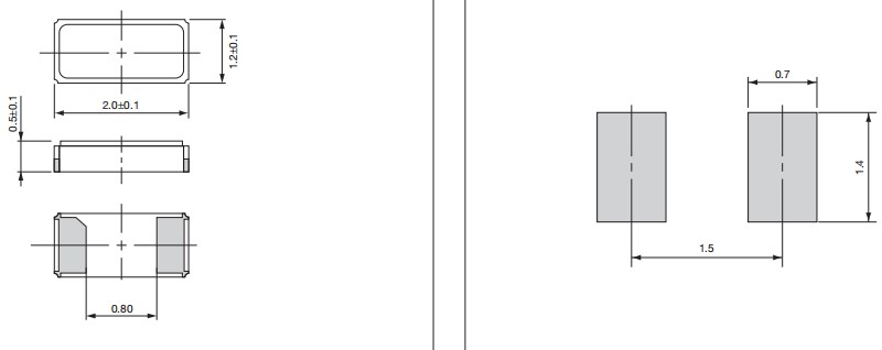 ST2012SB32768C0HPWBB,2012mm,32.768kHz,Kyocera品牌,ST2012SB,手表晶振,尺寸圖