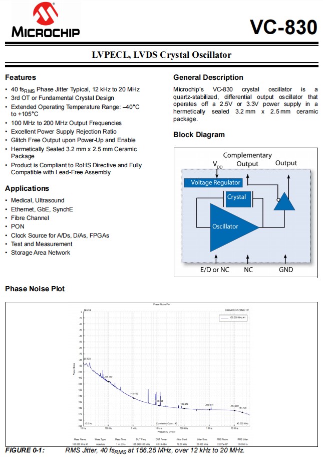 VC-830-ECF-GAAN-156M250000TR,156.25MHz,3225mm,Microchip晶振,VC-830,差分晶振,美國進口晶振,Microchip晶振,型號:VC-830系列,編碼為:VC-830-ECF-GAAN-156M250000TR,電源電壓:3.3V,LVPECL輸出差分晶振,工作溫度范圍:-40℃至+105℃,穩定性:±30ppm,頻率為:156.250 MHz,小體積晶振尺寸: 3.2x2.5mm封裝,六腳貼片晶振,有源晶振,石英晶體振蕩器,石英晶振,差分晶體振蕩器。具有超小型,輕薄型,低抖動,低功耗,低電源電壓,低耗能,低相位噪聲,低損耗,低電平等特點。應用程序:醫療設備、超聲波,以太網、GbE、同步,光纖通道,PON時鐘源的A/D、D/As、FPGAs,測試和測量,存儲區域網絡應用。