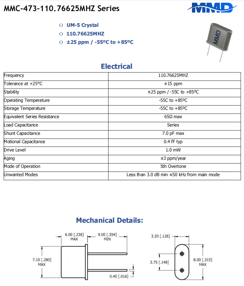 Mmdcomp插件石英晶體,MMC-473-110.76625MHZ,電話機6G晶振,通訊設備晶振,小體積晶振,參數表
