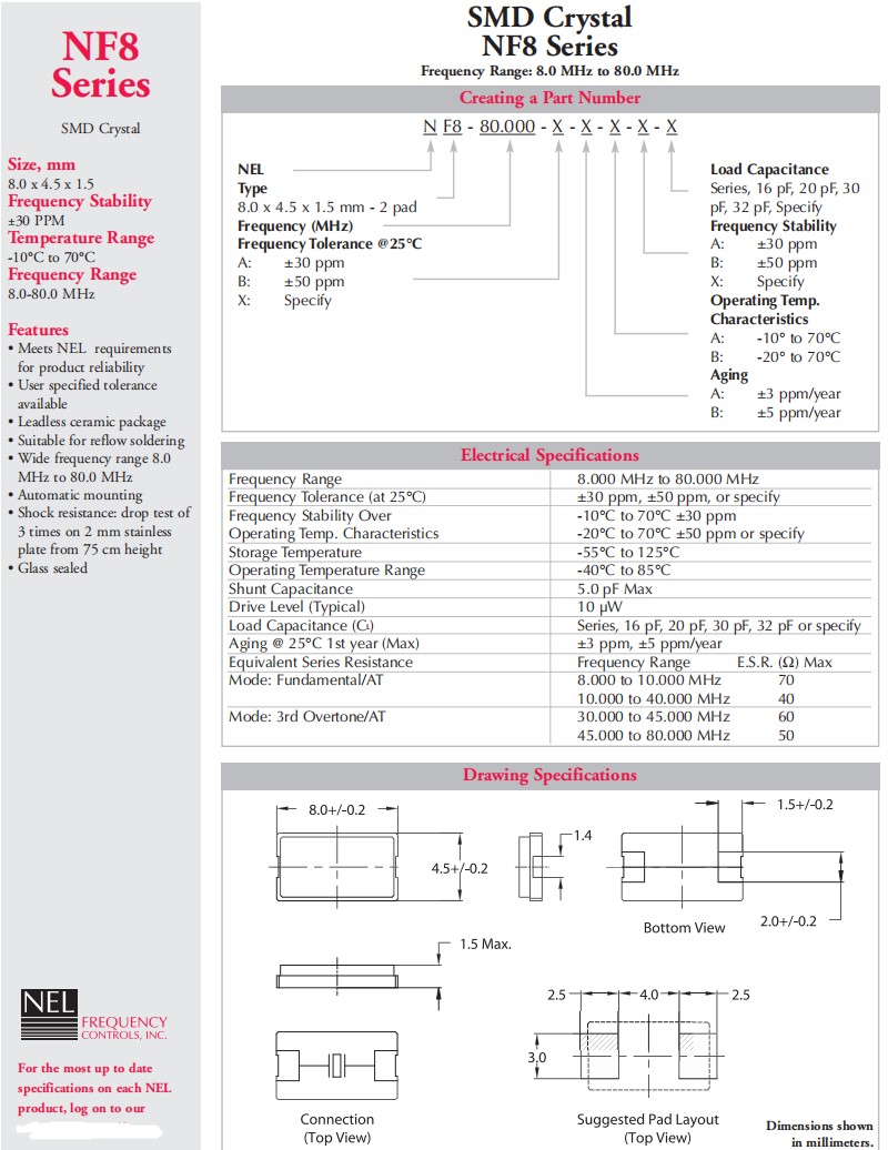 NF8-28.800-A-A-B-B-30pF,8045mm,28.8MHz,NEL石英晶體,NF8,數碼電子晶振,參數表