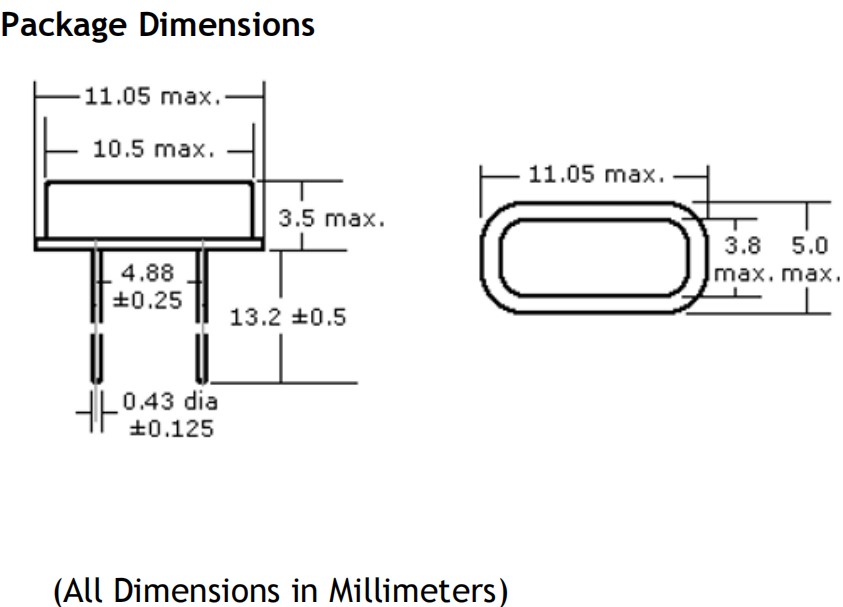 151-12.288M-SR-05KW-VS,12.288MHz,Oscilent晶振,插件晶振,石英晶振,尺寸圖