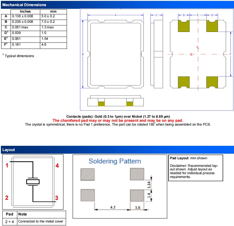 | Shunt Capacitance (C0) | - | - | 7 | pF | Pad to Pad Capacitance |