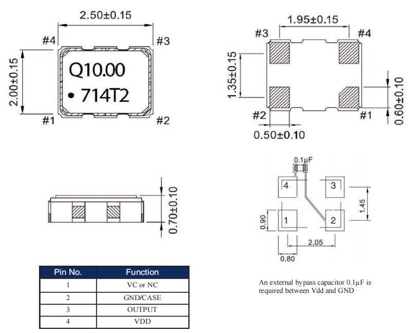 QTCT2203S1T-24.576000,2520mm,TCXO,Q-Tech晶振,QTCT220,導(dǎo)航應(yīng)用晶振,尺寸圖