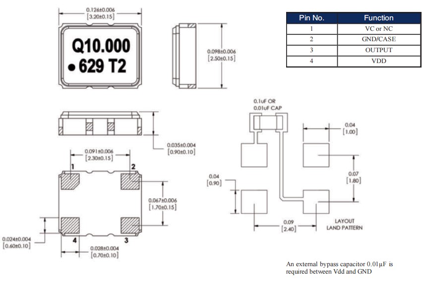 占地面積:3.2x2.5x0.9mm貼片石英晶振