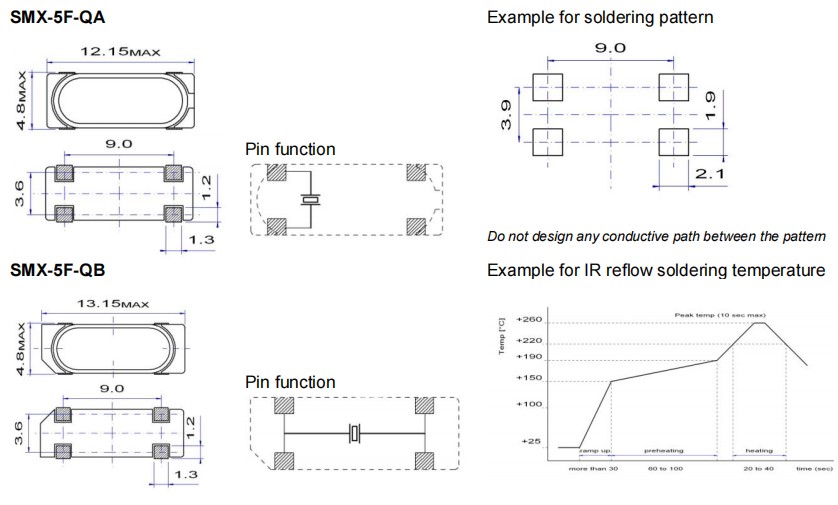 QuartzCom高可靠性晶振,SMX-5F-QA,儀器設備應用晶振,SMX-5F-QB,四腳貼片晶振,石英通晶振,瑞士進口晶振,QuartzCom晶振,型號:SMX-5F-QA,尺寸為:12.15x4.8mm,型號:SMX-5F-QB,尺寸為:13.15x4.8mm,與幾種塑料模制水晶兼容的引腳,是一款小體積晶振,四腳貼片晶振,無源晶振,薄型SMD晶振,石英晶振,石英晶體諧振器,無鉛環保晶振,寬頻率范圍:3.5MHz至70MHz,回流焊@260°C,工作溫度范圍:-20℃至+70℃商業應用,-40℃至+85℃工業應用,-40℃至+125℃汽車和應用。具有超小型,輕薄型,高精度,高性能,高品質,高可靠性、低成本的晶體,耐熱及耐環境特點。應用于:通訊設備,無線網絡,藍牙模塊,電信晶振,音頻晶振,導航晶振,儀器設備晶振,汽車電子,智能家居等應用。