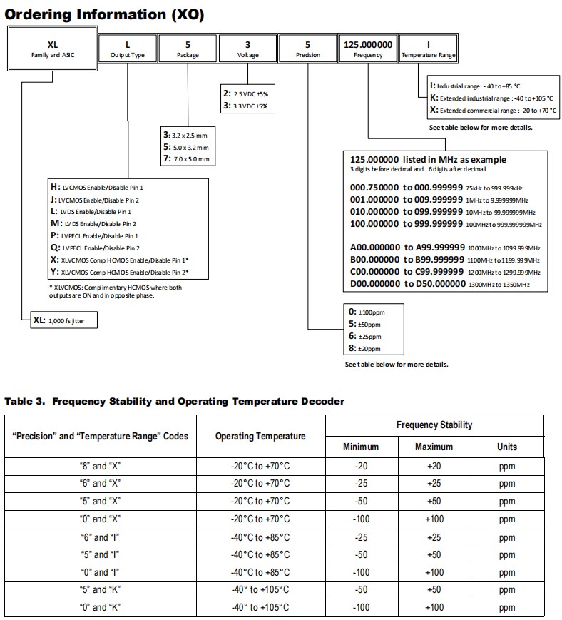 頻率穩(wěn)定性選項:±20、±25、±50或±100ppm(僅限XO)