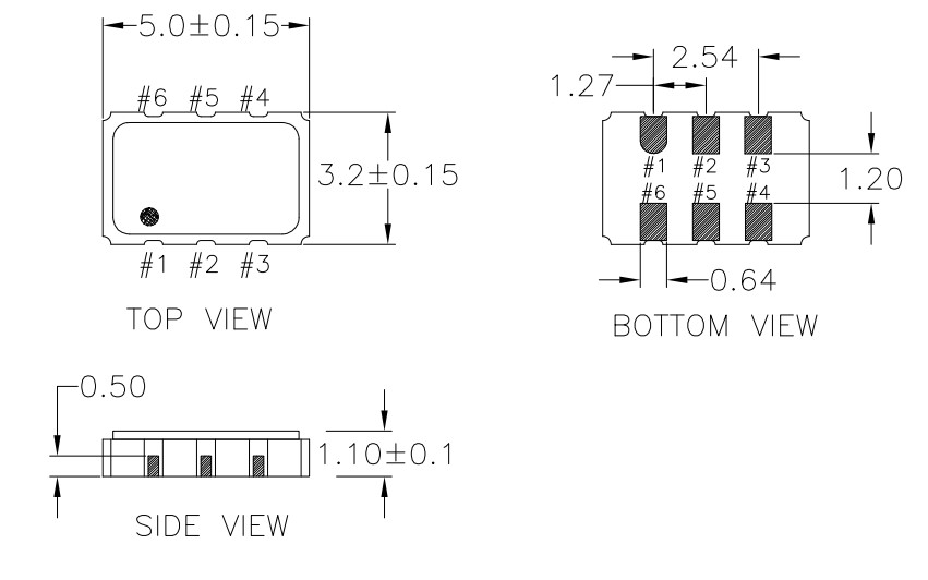 Renesas六腳貼片晶振,XLX525125.000000I,北斗定位晶振,尺寸圖