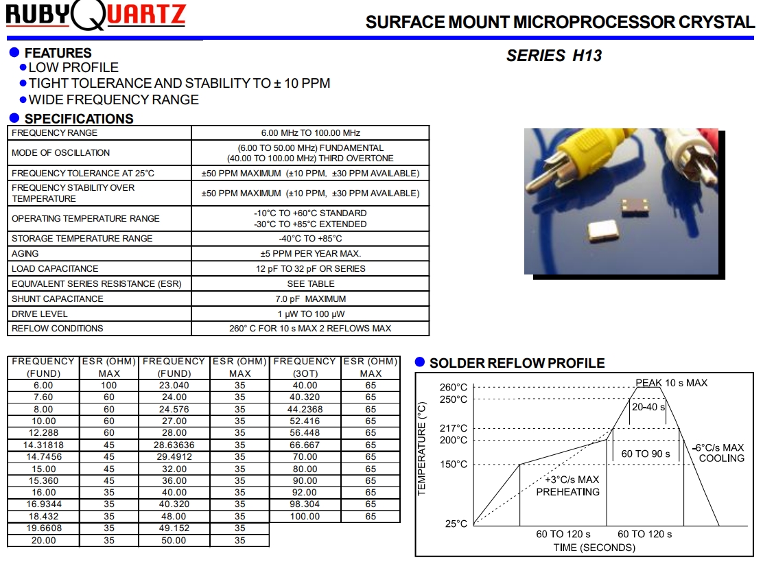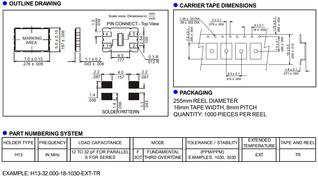 H13-32.000-18-1030-EXT-TR/Rubyquartz無源晶體/6G網絡晶振 參數表