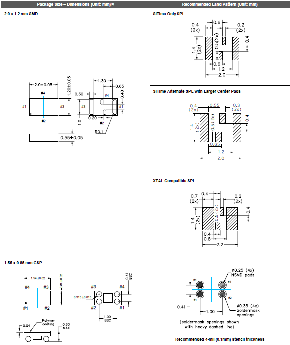 引腳兼容2.0x1.2 mm XTAL SMD封裝石英晶體振蕩器