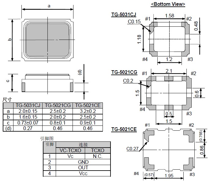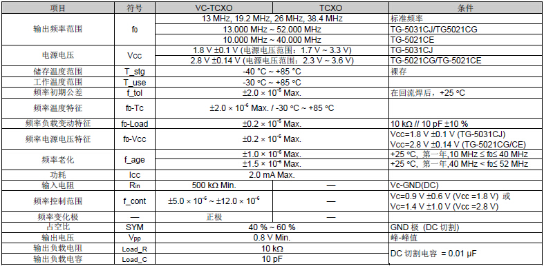 愛普生石英晶振,TG-5021CG溫補(bǔ)振蕩器,有源晶振,頻率范圍13MHz ~ 52MHz,電源電壓2.8V Typ.頻率溫度特征±2.0×10-6 Max.外部尺寸2.5×2.0×0.8mm,被廣泛應(yīng)用于手機(jī) (CDMA, WCDMA, GSM),具有低噪音特性.