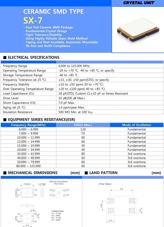 | Shunt Capacitance (C0) | 7.0 pF Max. |