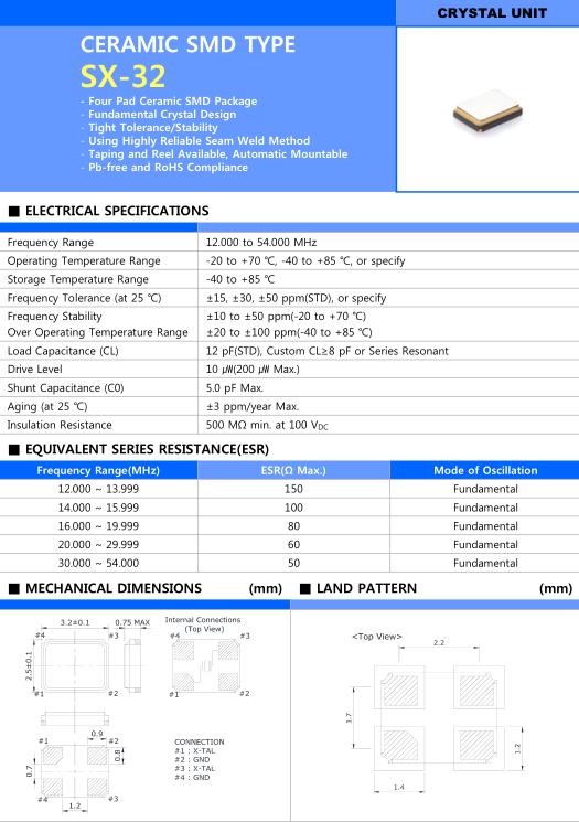 SX-32石英晶體諧振器,Sunny三呢晶振,SP8130J6-16.00000-T&R晶振,超小型表面貼片型SMD晶振,最適合使用在汽車電子領域中,也是特別要求高可靠性的引擎控制用CPU的時鐘部分.低頻晶振可從7.98MHz起對應,小型,超薄型具備強防焊裂性,石英晶體在極端嚴酷的環境條件下也能發揮穩定的起振特性,產品本身具有耐熱,耐振,耐撞擊等優良的耐環境特性,滿足無鉛焊接以及高溫回流溫度曲線要求,符合AEC-Q200標準.