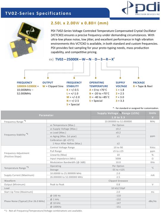 WI2WI進口晶振,TV02壓控溫補晶振,TV02-20000X-WMD3RX晶振,有源晶振,是指晶體本身起振需要外部電壓供應,起振后可直接驅動CMOS集成電路,產品本身已實現與薄型IC(TSSOP封裝,TVSOP封裝)同樣的1mm厚度,斷開時的消費電流是15µA以下,編帶包裝方式可對應自動搭載及IR回流焊接(無鉛對應)產品有幾種電壓供選1.8V,2.5V,3V3.3V,5V,以應對不同IC產品需要.