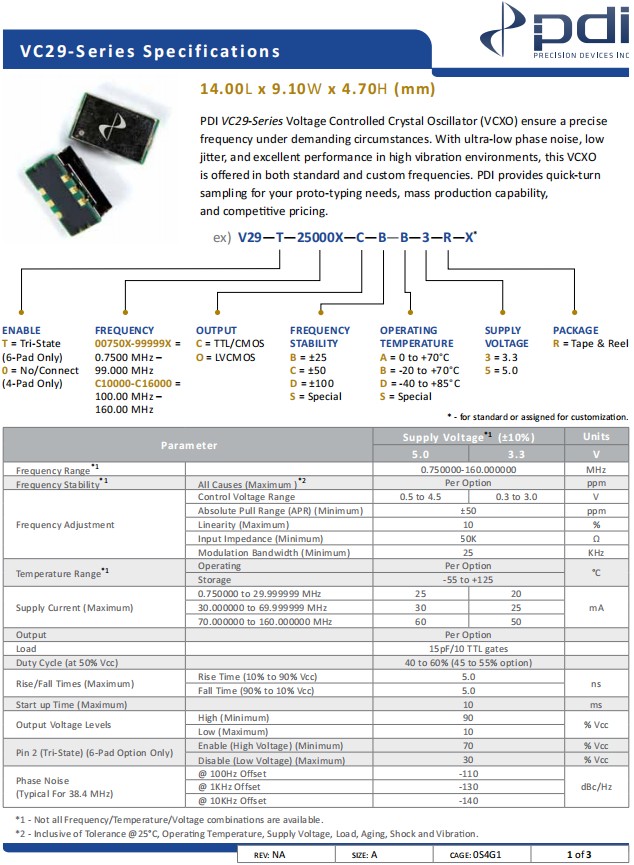 威爾威VCXO振蕩器,V29-T-48000X-C-B-B-3-R-X,VC29低功耗晶振,參數表