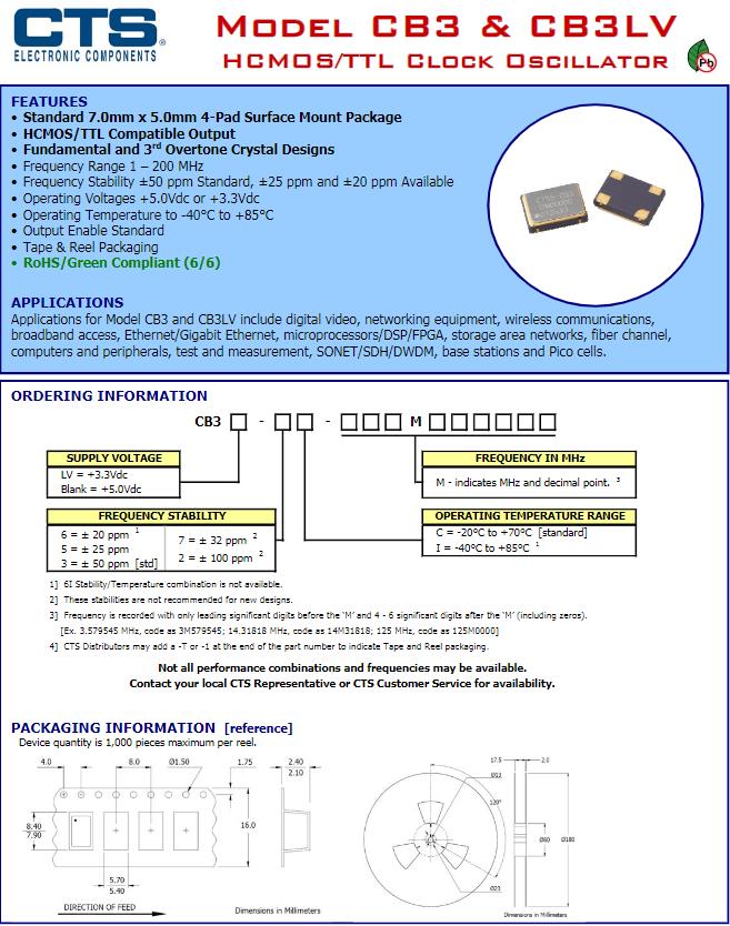 CTS常用編碼CB3LV-5I-25M0000是一款高精度,用于網絡設備的時鐘振蕩器