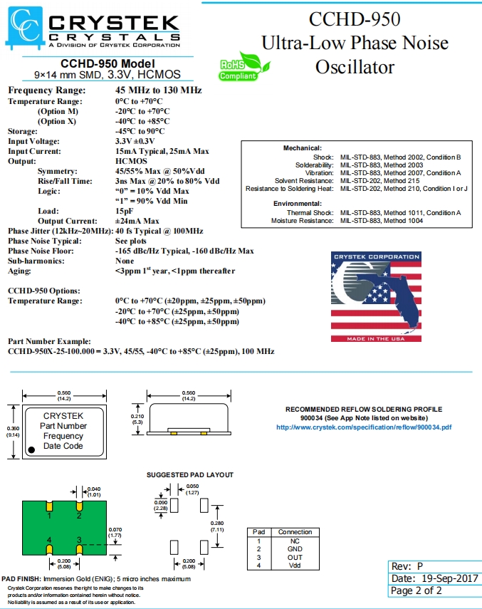 | CCHD-950X-50-100.000 | CRYSTEK振蕩器 | CCHD-950 | XO (Standard) | 100MHz | ±50ppm | 0°C ~ 70°C |