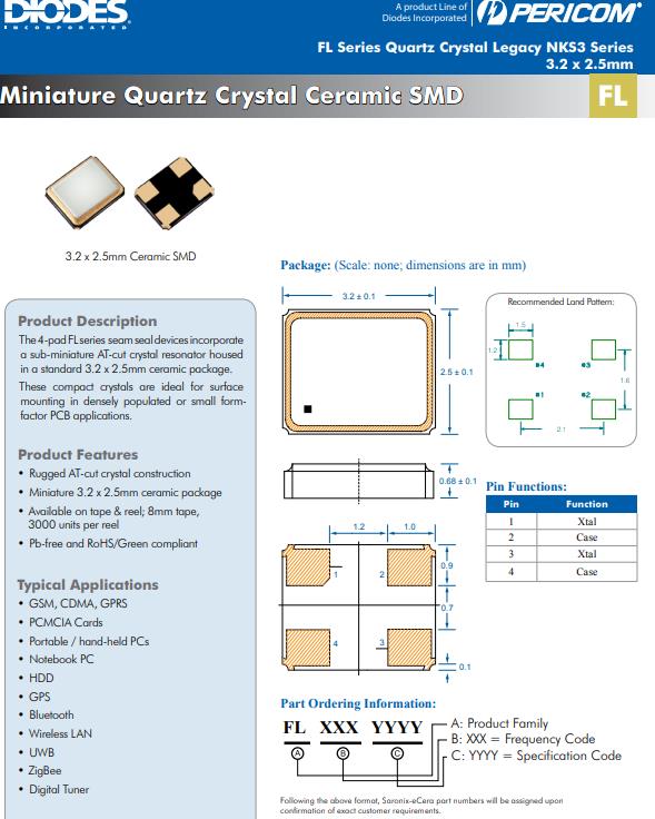 | FL2500213Z | Diodes晶振 | SaRonix-eCera™ FL | 25MHz | ±20ppm |